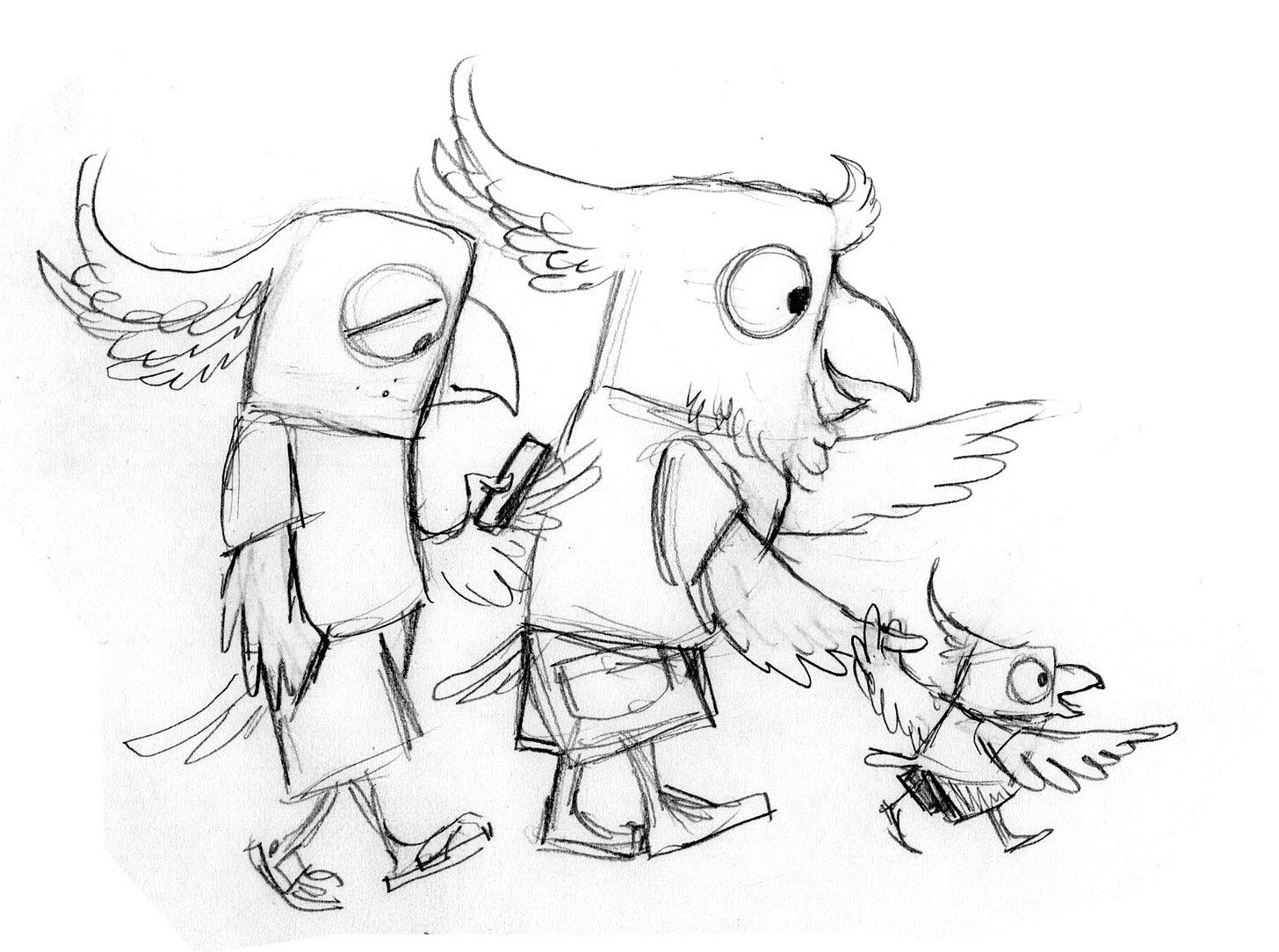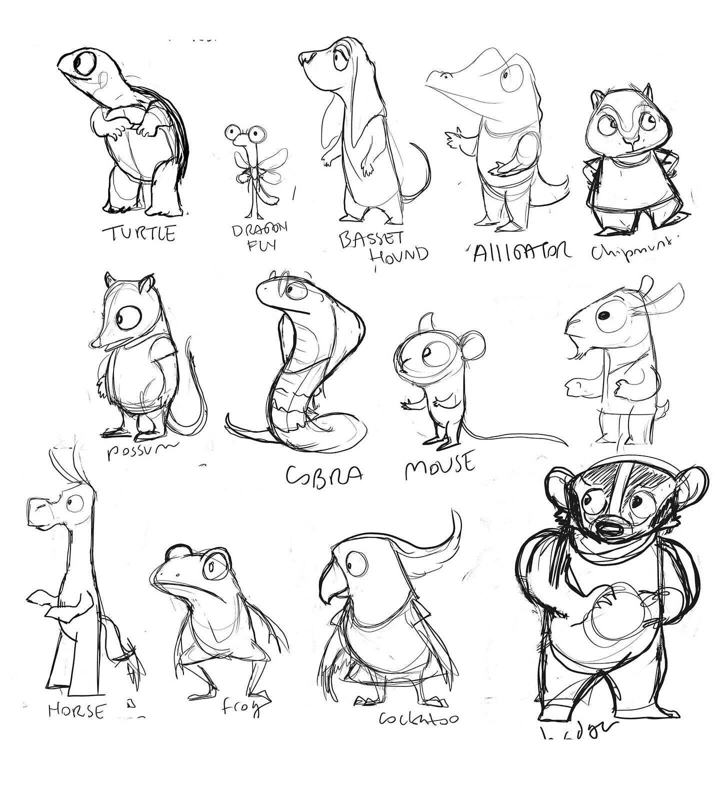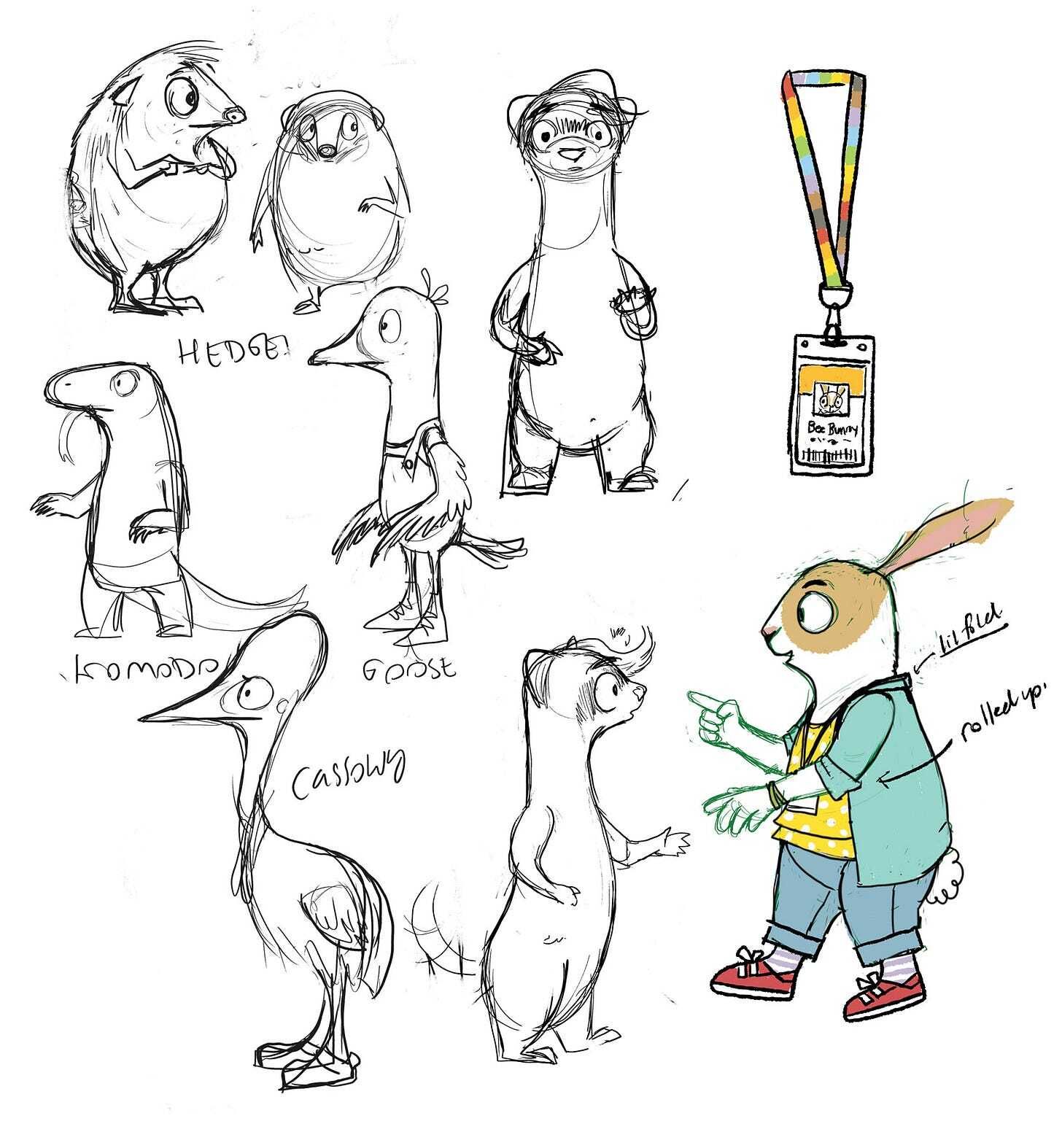 (early sketches for characters in Embarrassed Ferret)