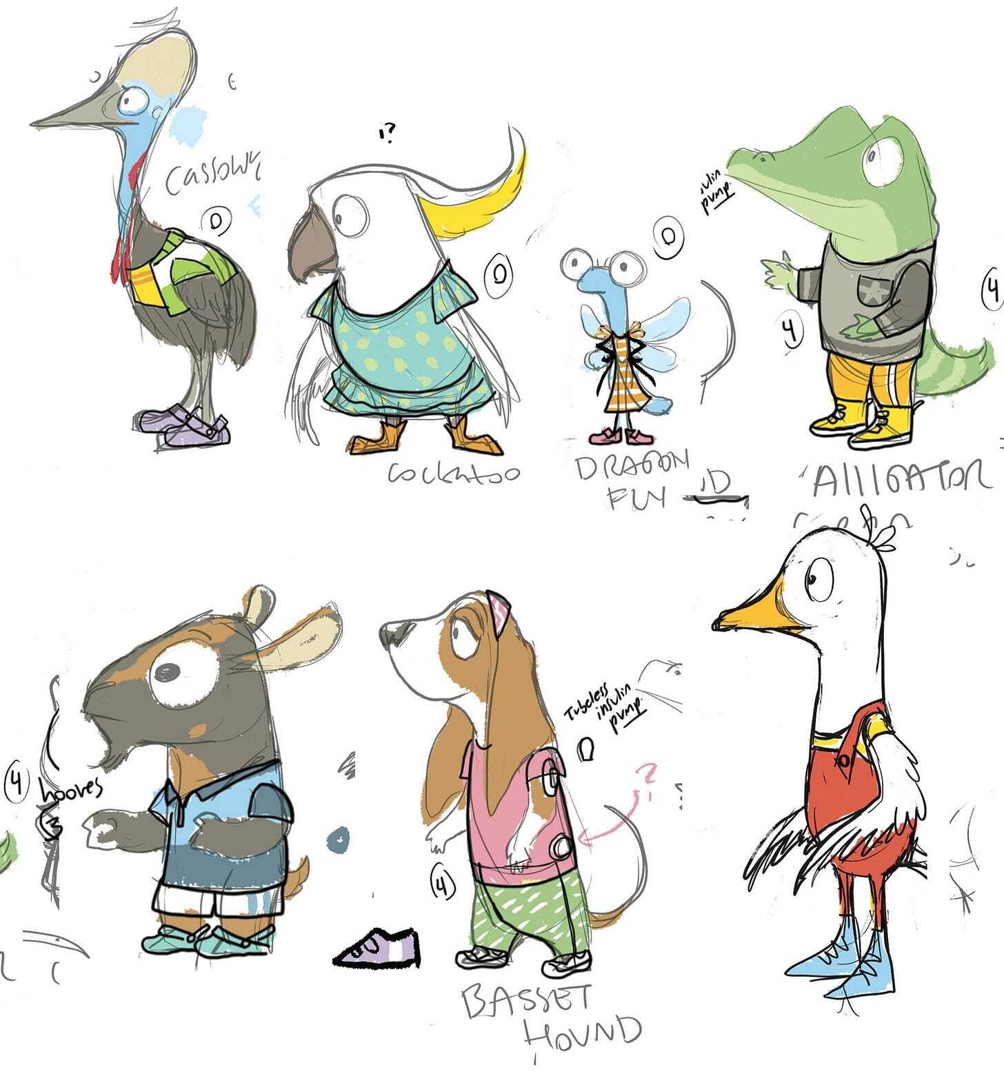 (now with outfits!)and since Lisa Frenkel Riddiough’s 2nd Ferret book (first book: Embarrassed Ferret, out from Disney-Hyperion Fall 2025) is set somewhere these characters’ parents might show up, well…